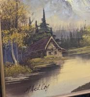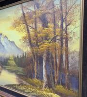 他の紅葉の額と違いあきらかに 黄色味が強い作品で 日本では見られないような自然の色彩に美しさが際立つ作品です。
